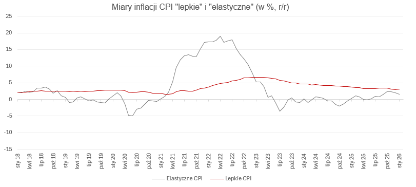 Odczyty miar „cen lepkich” za grudzień nadal wskazują na zwiększenie siły zakotwiczenia procesów inflacyjnych w gospodarce amerykańskiej. Dynamika inflacji „Sticky CPI”, czyli „lepkiej” miary inflacji, publikowanej przez Atlanta FED, po trzech miesiącach spadków wzrosła z 3,0% do poziomu 3,1% r/r. W tym samym czasie, z poziomu 2,0% r/r (listopad) do poziomu 1,6% r/r, spadła dynamika „elastycznej” miary inflacji („Flexible CPI”).